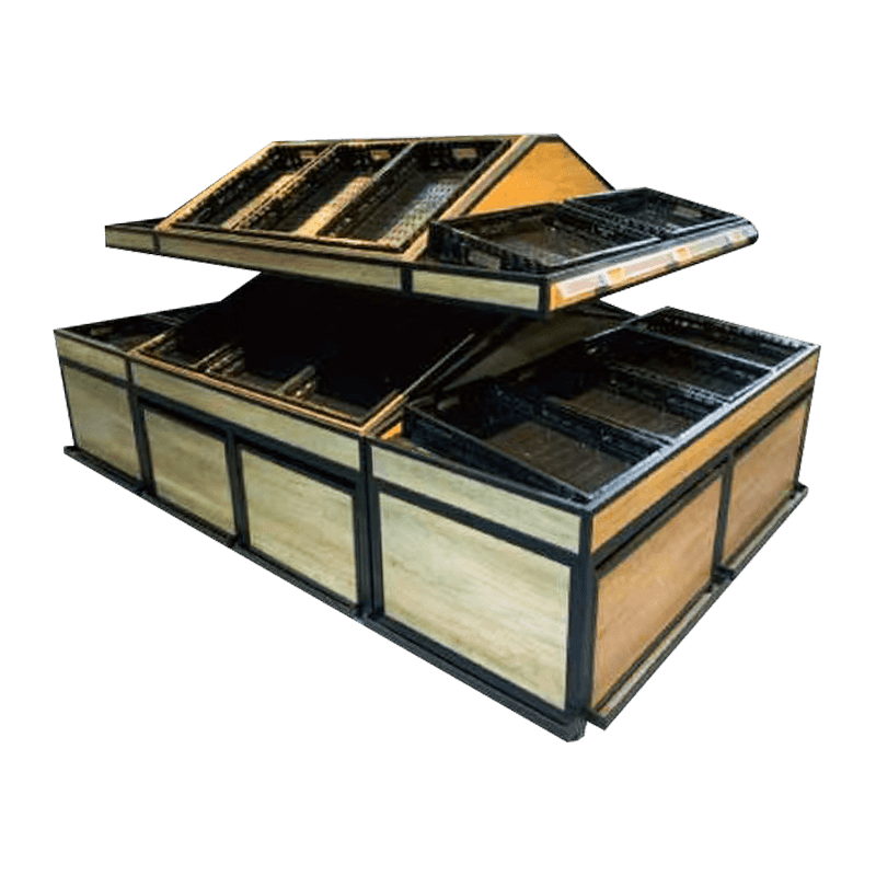 Dieses robuste, langlebige Obst- und Gemüseregal besteht aus hochfestem Metall in Kombination mit hochwertigem Holz und bietet außergewöhnliche Tragfähigkeit und Haltbarkeit. Es ist für die hochfrequente Lagerung großvolumiger Produkte konzipiert und eignet sich daher ideal für Supermärkte und Frischmärkte mit starkem Verkehr. Seine stabile Struktur sorgt für Langzeitstabilität ohne Verformung, auch bei Dauereinsatz.